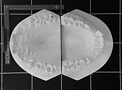 - Abdrücke beider Kiefer, um Gipsmodelle herzustellen.