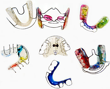 Diese Spangen aus Kunststoff und Edelstahldrähten können von den Patienten selbst eingesetzt und herausgenommen werden.