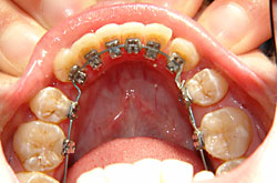 Bei der Lingualtechnik werden die Brackets auf der Innenseite (lingual = zur Zunge hin) der Zähne befestigt. Diese Spange ist von außen absolut nicht sichtbar.